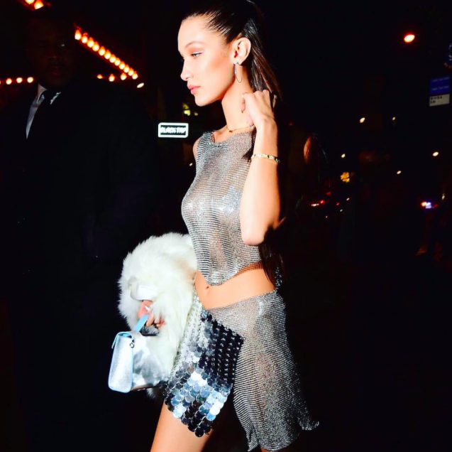 Снимки с Дня рождения Беллы облетели весь интернет и уже активно обсуждаются в сети. На фото Белла позирует в прозрачном костюме состоящем из юбки-мини и прозрачного топа, под который она не стала надевать бюстгальтер. Топ и юбка между собой соединены металлической цепочкой. Сексуальный образ Белла дополнила босоножками от Public Desire Perspex, стоимостью около 960 грн в переводе на наши деньги, маленькой сумочкой от Dior и меховым болеро.