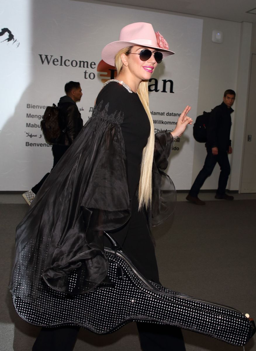 Выйдя с самолета Леди Гага держала в руках гитару в чехле.