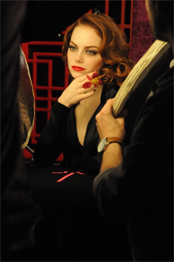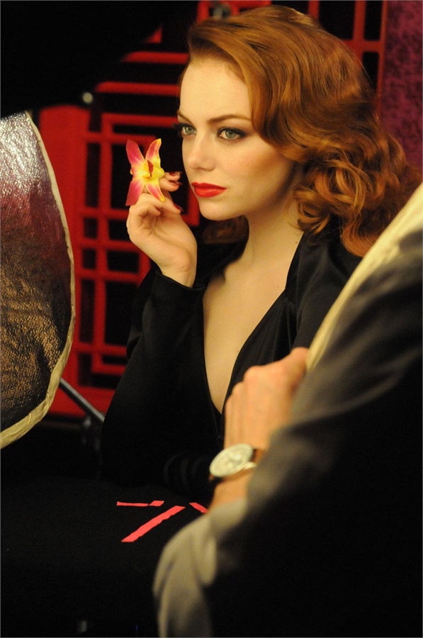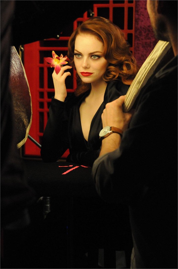 Вдохновением при создании образа Эммы для визажиста Гуччи Вестмана послужил Китай. "Я много путешествовал по Китаю и был поражен его архитектурой и природной красотой китаянок, — сказал он. — В этой работе мне хотелось соединить утонченность и романтику Востока с практичностью и удобством Запада".