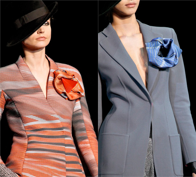 Массивные броши, украшенные большими яркими камнями, перьями и тканью – то, что нужно для декора верхней одежды. Более мелкие и хрупкие варианты можешь сочетать с топами, свитерами, джемперами, блузами и другой одеждой.