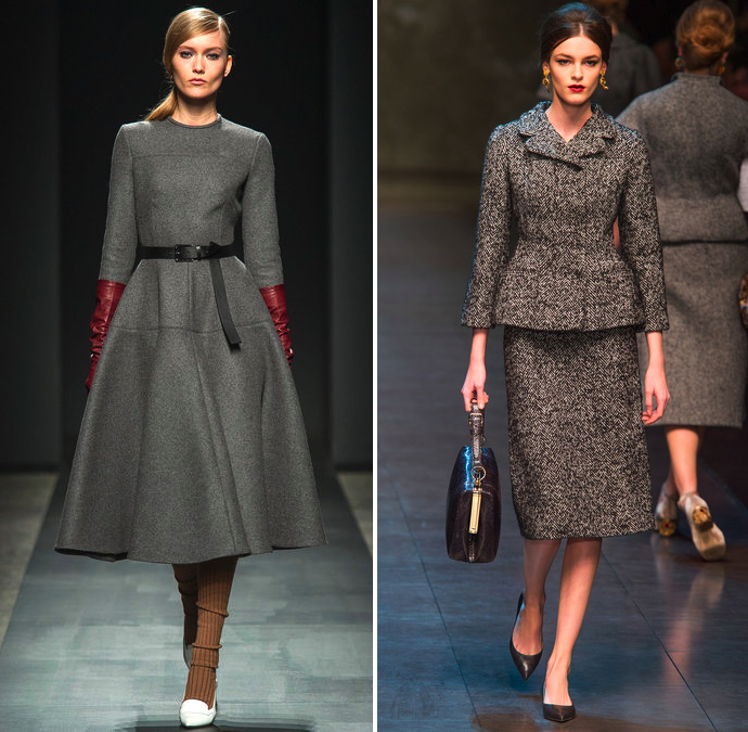 Ретротематика стала лейтмотивом показов в Милане, также как и в Лондоне и Нью-Йорке. Дизайнеры не проявили единодушия в выборе эпохи. Так, 40-е были замечены у Dsquared2 и Aquilano.Rimondi. Тему развила Миучча Прада, показав момент перехода от военных 40-х к диоровскому new look в одной из самых сильных коллекций сезона. Мотивы 50-х были подхвачены Dolce & Gabbana и маркой Ports 1961.