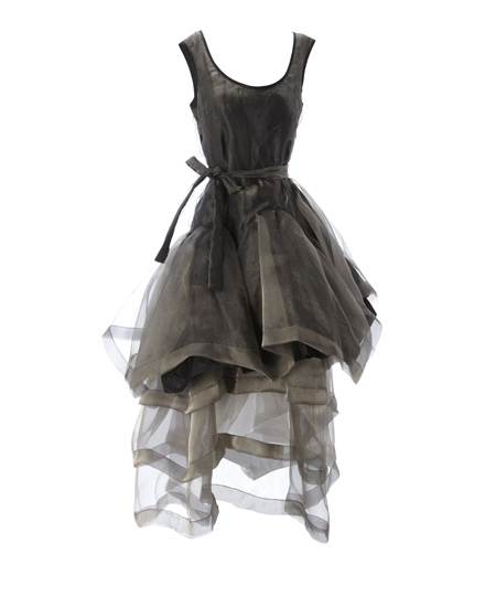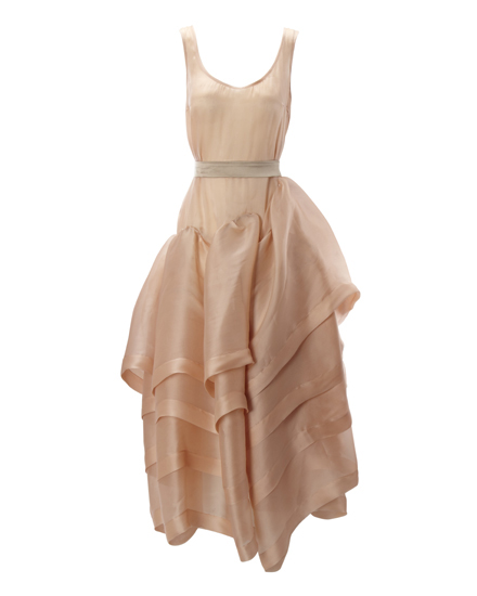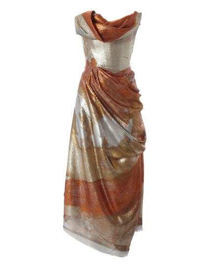 Вивьен Вествуд выбрала не только ностальгический крой платьев, но и ткани, которые были особенно популярны в XX веке - тафта, атлас и шелк. Платья обнажают плечи, некоторые без бретелек, другие обтягивают женский стан при помощи тугого корсета. Разумеется, отличительная черта новой коллекции вечерних платьев – это массивные и пышные юбки из органзы и драпировки.