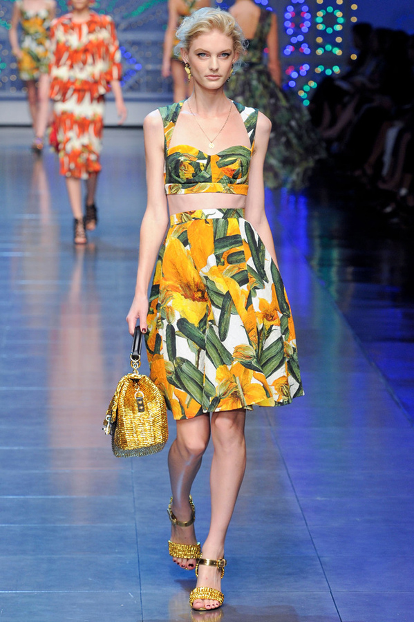 Не стесняйся показать пупок: летом-2012 это не только можно, но и нужно, ну конечно, если фигура позволяет. Среди топов самыми трендовыми считаются модели бюстье с цветочным принтом – точно как на показе Dolce&Gabbana. Давай попробуем сделать такой топ своими руками.
